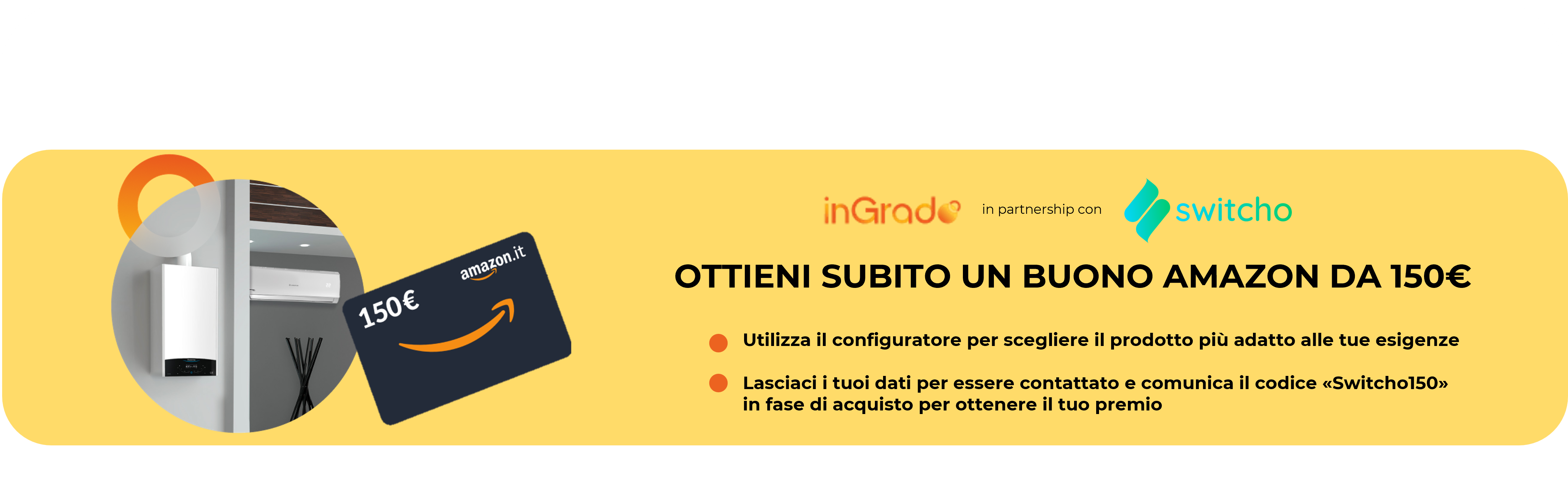Con inGrado puoi acquistare la soluzione migliore per il tuo comfort climatico in modo facile, veloce e digitale. Il nostro configuratore ti guiderà passo dopo passo aiutandoti a scegliere il prodotto più adatto alle tue esigenze, proponendoti una selezione dei migliori prodotti. Organizzeremo sempre un sopralluogo gratuito e senza impegno con un nostro tecnico di fiducia. Se il sopralluogo andrà a buon fine, ti chiameremo per concordare la data dell’installazione. L’intervento è compreso nel prezzo e potrai contare sulla competenza di esperti qualificati e certificati